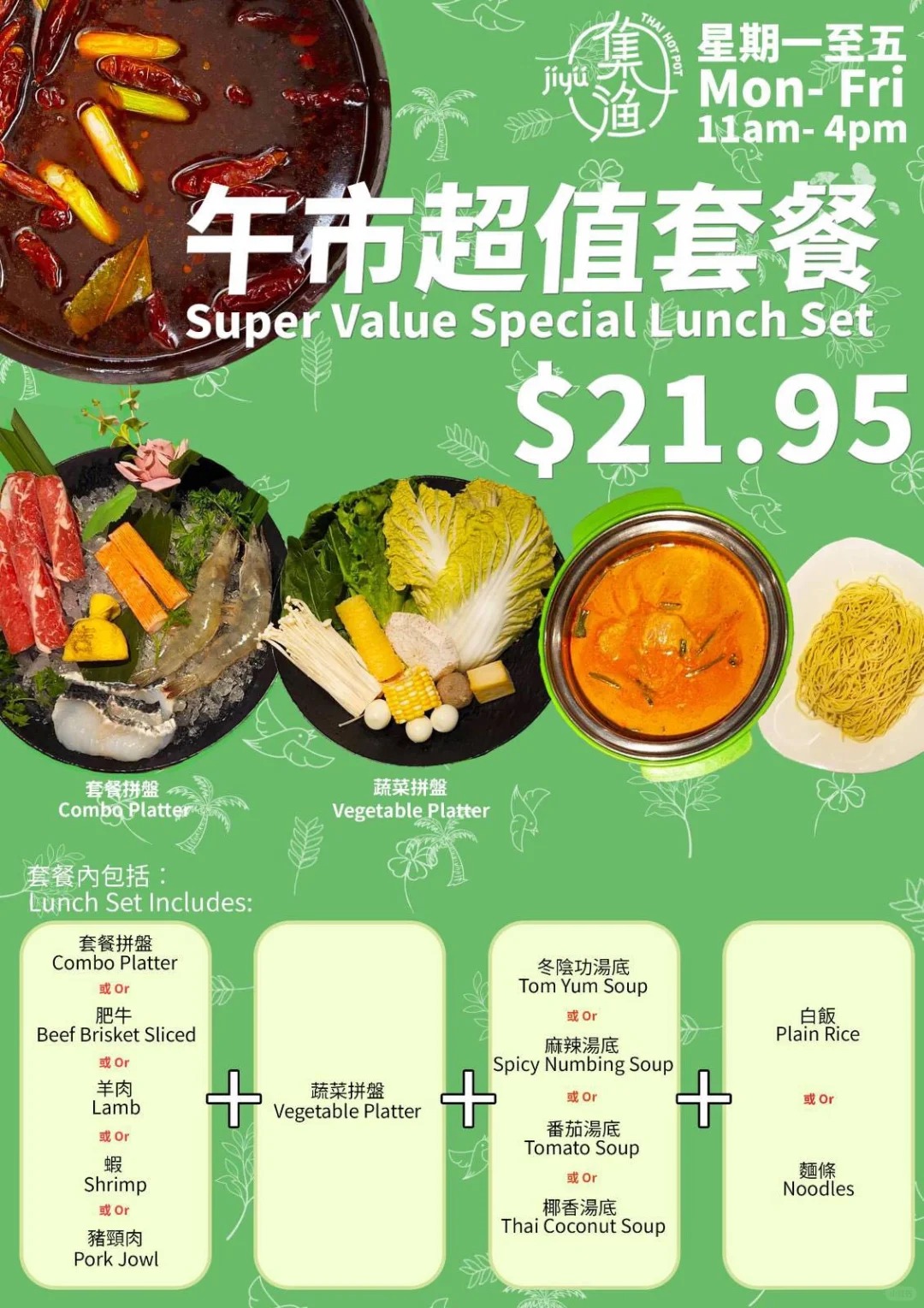 集渔泰式海鲜火锅夏日有午餐特惠。