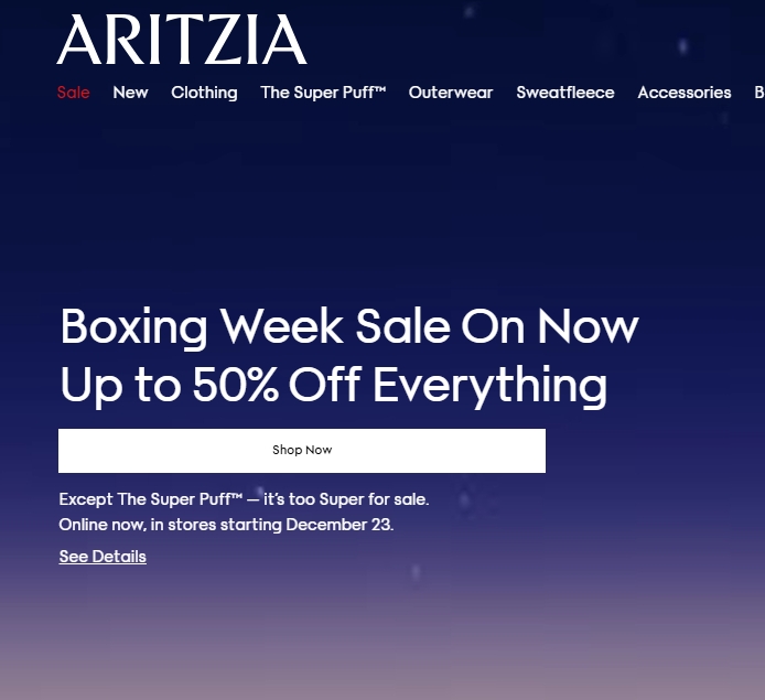 Aritzia 今年的Boxing Week Sale从昨天晚上已经提前开始了!今天起大量特价品可以选择。