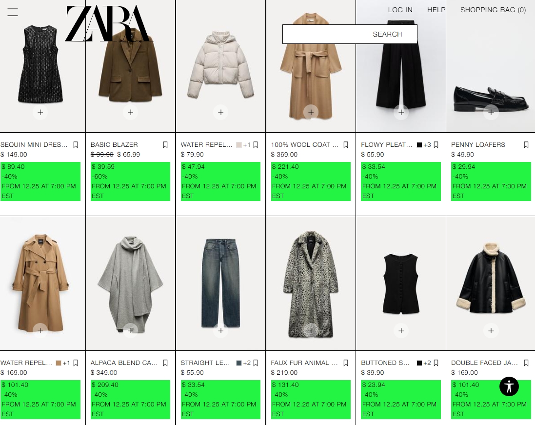 Zara Boxing Day打折今晚12月25日圣诞节晚上7点开始!官网app已经可以看到特价品并提前加购购物车。