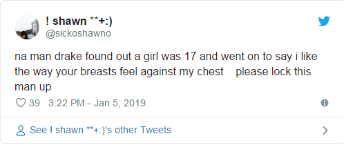 德雷克知道女孩17岁还说那些什么喜欢你的胸部贴在我的胸部上这样的言论,请把他关起来!