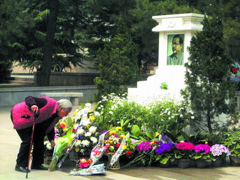 门口有保安守卫,但任何人都可以随便进入,不收门票也无需出示证件。进入大门,笔直大道直通前方,透过道旁两侧的苍松翠柏,齐整密集的庞大灰色墓碑群缓缓浮现--革命公墓的历史肃穆感逼人而来。