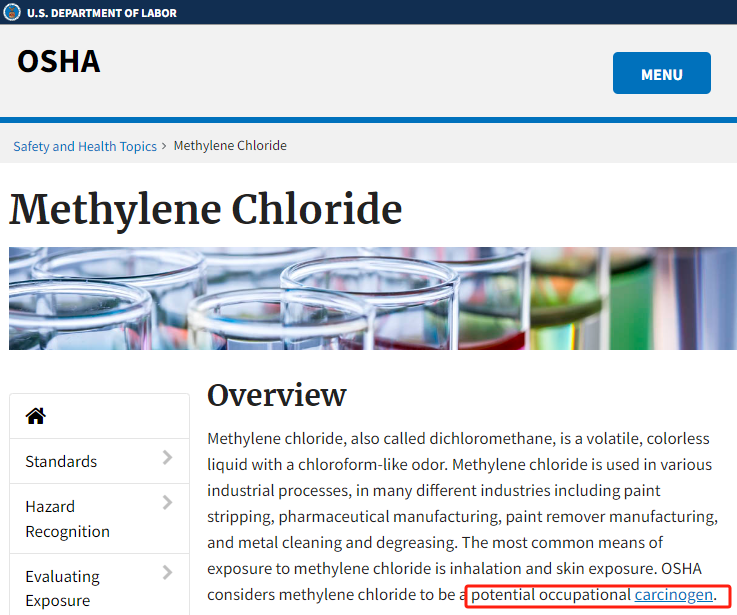 OSHA认为,二氯甲烷是一种潜在的职业致癌物。