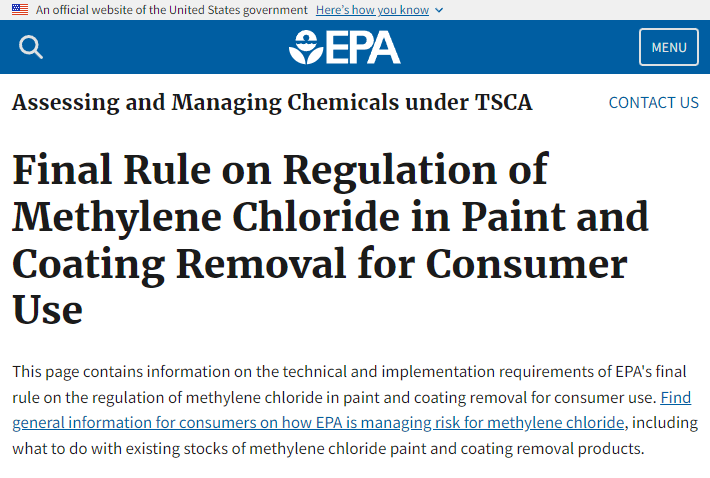 该化学品的毒性曾导致美国环保署在2019年禁止将其作为脱漆剂销售;农业部表示,2023年,该机构提议禁止将其用于其他消费用途和许多工业和商业用途。