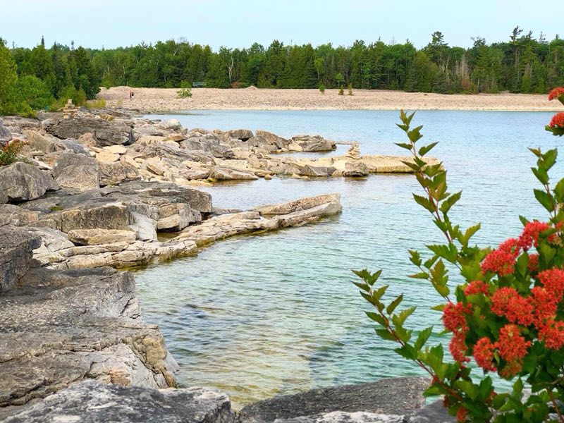 (星星生活专稿/作者:国岭)建立于1987年的布鲁斯半岛国家公园(Bruce Peninsula National Park )及周围水域组成的五浔国家海洋公园(Fathom Five National Marine Park )坐落于安省布鲁斯半岛,面积分别为154、112平方公里。