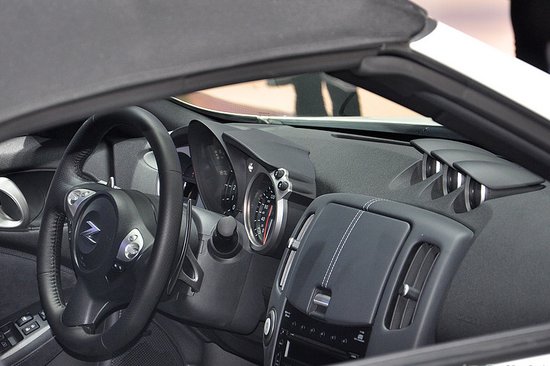370Z的内饰给人最大的印象就是太紧凑了。无论是中控台还是座椅,丝毫没有多余的装饰。三环仪表板上中置转速表,左侧是电子显示的水温、油量表,右侧则是令人激动的速度表,以及中控台上方的三组辅助仪表。与此同时,方向盘集成与英菲尼迪有一定的相似度,尽管车后的空间并不算大,但是放置一些日常的行李和物品还是没有问题的。