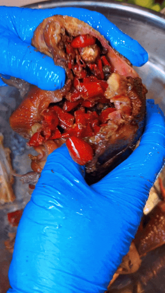 鸡身内同时填入花椒,青花椒等辛香料🌶️,