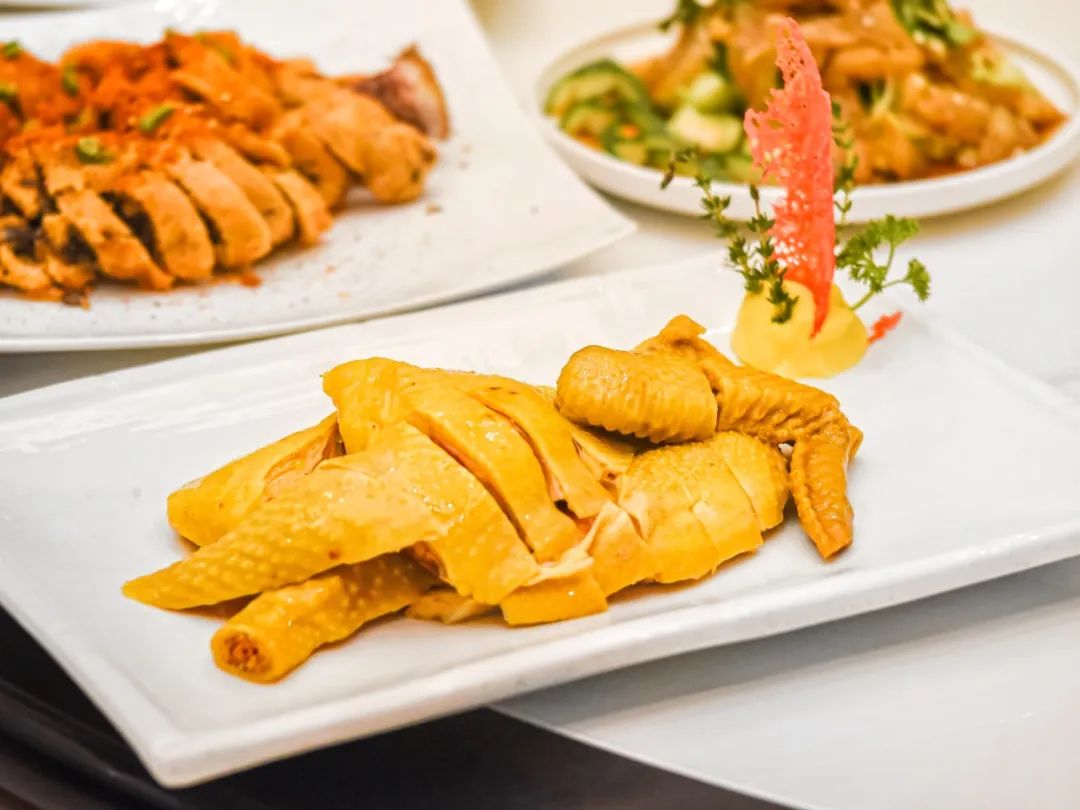 贵妃走地鸡火候刚刚好,鸡肉很嫩、也很入味~一口入嘴,肥瘦相间,肉质弹牙鲜嫩,一点儿都不柴。