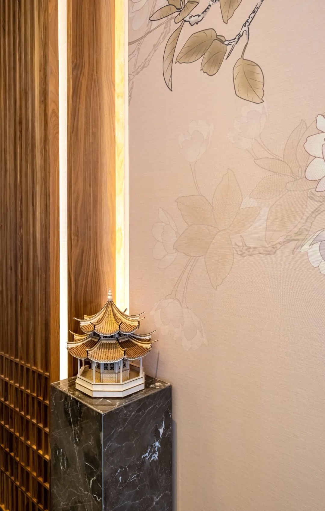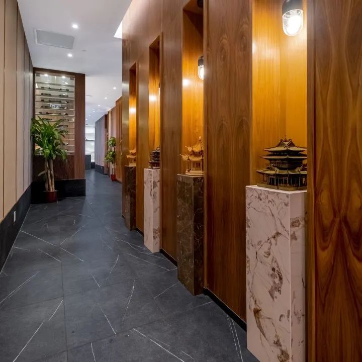 推门进入后给人一种高端私密尊享的体验,室内装修设计由大处着眼,极尽中式贵族风格,从小处入手,关注于每一个细节,楼阁台榭,每一处装饰都彰显细致奢华。